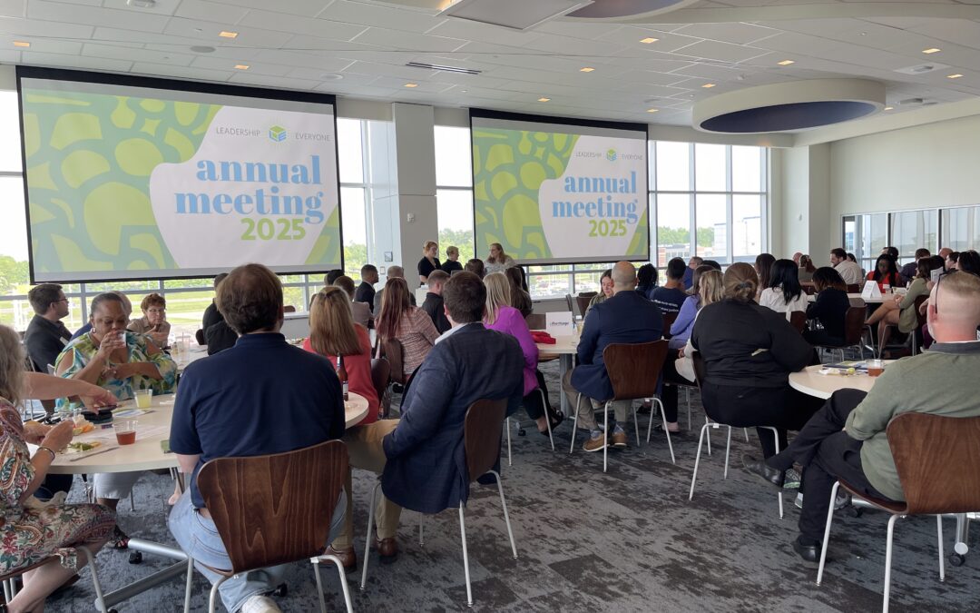EVANSVILLE, IN—Leadership Everyone (LE) reflected on another successful year of engaging regional servant leaders and fostering community growth during its Annual Meeting held on May 14, 2025, at the Kramer Pavilion Conference Room at Deaconess Orthopedic Neuroscience Hospital.